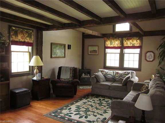 Remodeled Century Home with lots of character. Open exposed beams, hardwood floors, 1st floor laundry, 3 possible 4 Bedrooms, Sun room, 24X40 detached garage with workshop, 5 + acres.