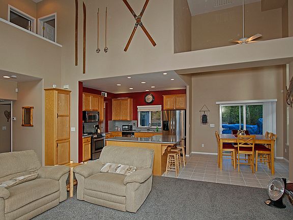 Welcome to Shaver Lake's Musick Falls subdivision. This beautiful Quiring built home features 4 bedrooms, 2.5 bathrooms and a great open floor plan. When walking inside, the vaulted ceilings and huge windows allow for great natural lighting. The open kitchen has ample counter space and cabinets with stainless steel appliances. On the main level off of the kitchen, there are two bedrooms and a full bathroom, each with large closets and ceiling fans. Off the kitchen is a laundry room which leads you to a half bath as well as the outside deck area. Upstairs are the two remaining bedrooms and another full bath. The back yard area is very well maintained with a great entertaining area in the back and side of the house. Also - Don't worry about storing all of your gear, you have plenty of room in the attached 2 car garage with LOTS of additional storage. Call today to view this beautiful Shaver Lake home!