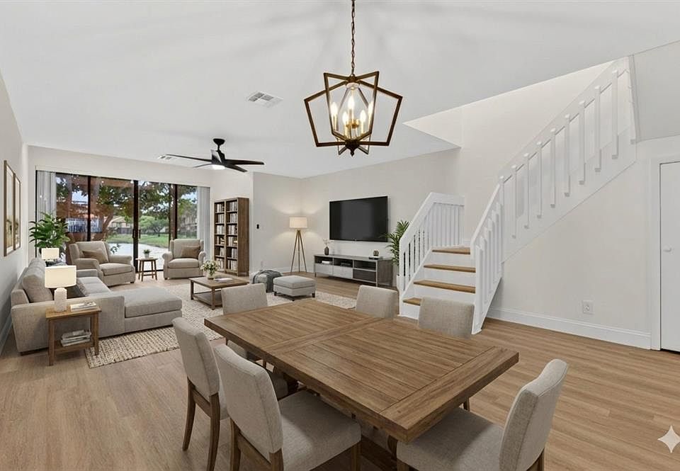 This stunning 2-bedroom, 2.5-bath townhouse offers gorgeous lake views and a modern open floor plan. Each bedroom features its own private bathroom with updated vanities and designer sinks, plus a convenient guest half bath downstairs. The home boasts kitchen with updated counters and stainless-steel appliances, along with wood laminate flooring throughout. Rent comes includes water and basic cable