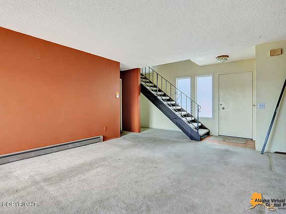 Ideal for first-time homeowners, this charming townhome offers two spacious bedrooms, 1.5 baths, a fenced back yard for privacy, and a convenient carport. Living room features a real brick accent wall. The HOA has RV parking, while its proximity to JBER, shopping centers, and scenic trails ensures a perfect blend of convenience and outdoor enjoyment.
