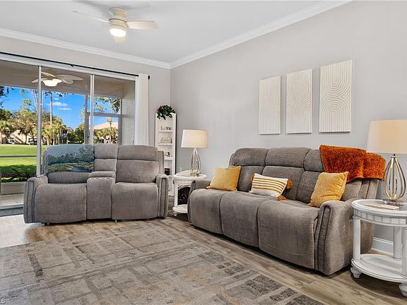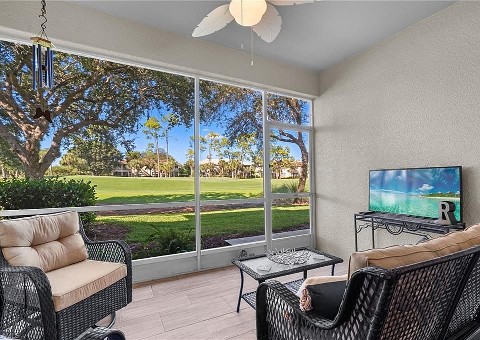 GOLF & LAKE VIEWS – UPDATED INTERIOR – BUNDLED GOLF MEMBERSHIP INCLUDED! Welcome to this beautifully updated first-floor condo in the highly sought-after Forest Glen Golf & Country Club, offering a bright open floor plan and peaceful views of the 6th green and lake. This move-in-ready home features quartz countertops, upgraded wood cabinetry, crown molding throughout, extended shelving in the primary closet, and blending comfort and functionality. The spacious primary suite offers dual sinks and a tiled walk-in shower, while the screened lanai is the perfect spot to relax and enjoy the serene surroundings. Numerous updates include freshly painted walls (2021), new kitchen cabinets, countertops, and sink (2022), new ceiling fans, light fixtures, crown molding, and baseboards (2022), new door hardware (2023), updated bath fixtures, shower floor, and bench (2023), new kitchen appliances and water heater (2024), new lanai tile and screen (2024), and a new heating and cooling system (July 2025). Residents enjoy a vibrant lifestyle in this member-owned, debt-free bundled golf community featuring an award-winning Arthur Hills–designed course, renovated clubhouse with poolside bar & grill, member pub, tennis and PICKLEBALL courts, fitness center, nature trails, and year-round social events. Perfectly located near downtown Naples, world-class beaches, shopping, and fine dining, this condo offers the best of Florida resort living.. THIS PROPERTY QUALIFIES FOR A 1% LENDER INCENTIVE IF USING PREFERRED LENDER, INQUIRE FOR MORE DETAILS**