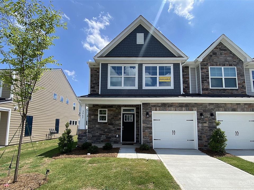 Proud to be named 2023 Builder of the Year, by the Home Building Association of Greater Charlotte! This Cary plan is an end unit with just over 1,800 square feet. The primary suite with tray ceiling is on the main level, along with a two-story great room and kitchen/dining area. The primary bath has a double-bowl vanity & a semi-frameless shower door. The beautiful kitchen has white cabinets with crown molding, quartz counters, a ceramic tile backsplash, and stainless appliances, including a gas range. Beautiful and durable Enhanced Vinyl Plank flooring runs throughout the main living areas. The upper floor has two bedrooms, a loft, and a finished storage room/bonus room. This home has a covered rear porch and a privacy fence between rear yards. Onsite New Home Specialist can provide guidance regarding estimated completion dates - however any dates provided are subject to change. Pool & Cabana, Dog park, playground, & paved walking trail now open!