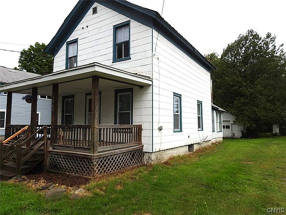 Perfect 2 Story starter or vacation home located on a quaint little side street in Lyons Falls. 2 bedrooms upstairs, 2 full bathrooms, landing on the top of the stairs could be utilized as an office space or reading room? Every room has been freshly painted. The upstairs floors were stripped and painted, the kitchen sink and counter were replaced. Kitchen is currently set up with a wood stove but could easily be moved out for a kitchen makeover. Everything here is natural gas, public water and sewer (a bonus). The Gas furnace is only a year old. Good sized yard, and nice detached garage for extra storage make this worth a look. If you are looking for snowmobile camp - the trail is at the end of the street!