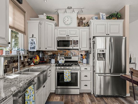 This beautifully updated home sits on a generous sized lot with a spacious 3-car garage, RV parking with plenty of room for your vehicles and storage. Fully landscaped with grass, trees and shrubs. The kitchen is newly renovated featuring updated cabinets, sleek granite countertops and stainless steel appliances.This home boasts energy efficiency with installed solar panels., Additional recent updates include LVP flooring along with plush carpet, a newer garage door, roof, exterior painted with elastin paint, hot water heater, and the backyard deck has been replaced with high-quality composite decking.