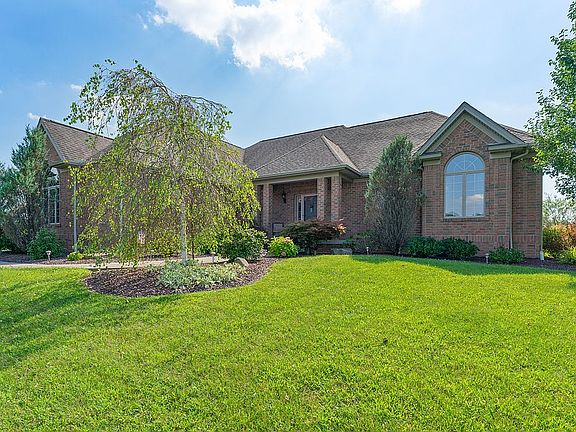 Fresh paint throughout. Upgraded landscaping. Stunning waterfront home on a 10-acre lake has it all. Situated 800’ off the road with over 10 acres of land on a private lake with water ski slalom course. The lake is stocked with largemouth bass and other fish and there is plenty of wildlife roaming the property. Make this your primary residence or your weekend getaway. This one-of-a-kind property has over 2,600 sq ft of living space plus a full 12 course basement. Space is plentiful as you enter through the huge foyer area. Room for your family with 3 bedrooms and 2 full baths plus a bonus enclosed outside shower with an overhead 12" rainfall shower head. This one of a kind home is only 40 miles from Cleveland and 65 miles from Pittsburgh and only minutes to major highways for an easy commute to several international airports. Shopping, restaurants, schools (public/private), hospitals and many affordable golf courses are close by. Whether you enjoy this home as your permanent residence or summer/seasonal home, you will enjoy sharing this private location with family and friends. Built in 2006, this ranch home with 9' ceilings boasts an open floor plan designed to take full advantage of the spectacular waterfront setting from many vantage points. All common areas have hardwood oak flooring installed. The great room has a custom-built fireplace with built-in entertainment center and cabinets on either side. It also has a trayed ceiling and extensive crown molding adjoins to the large kitchen with an L-shaped bar that seats 6 and opens to the oversized dining area. All of these areas take full advantage of the view of the lake. The open stairs to the full basement are spacious and feature large wood newels and railings. The well-appointed kitchen has maple cabinets with matching over range hood, all stainless appliances and a pantry. The 3-season room added in 2015 also features the stunning lake view and unforgettable sunsets has wood siding on the walls and ceiling, commercial indoor-outdoor carpet, sliding glass windows and a 6’ sliding glass door with access to the 3 level Trex deck. The master suite also affords a lakefront view, features two walk-in closets plus a jetted tub and fully tiled shower in the master bath. The split bedroom floor plan features 2 secondary bedrooms, the largest of which is currently utilized as an office, also has a lake view! The laundry room is oversized and can be used as a craft room and has plenty of storage cabinets and counter space along with a utility sink and stacking full size washer and dryer. The 3-car attached garage is extra deep and wide to accommodate 3 full-size vehicles with hot and cold water, 8’ high automatic overhead garage doors and features walk out access to the full basement. On the lake side you’ll be sure to note the beautiful 3 tier Trex deck adjoining a brick paver patio with plenty of room for entertaining. All this steps down to the lake with a Trex walkway to the custom built boat house with overhead electric lift and Trex decking on the wrap-around dock. Come in from the lake via a separate hallway with ceramic tile flooring which leads to the second bathroom. No problem storing all your toys and equipment in the 2,000 square foot pole building with 14’ high metal walls and two 12’ high x 16’ wide overhead doors for easy access. The lot extends well into the full recreational lake where every day will feel like a VACATION DAY!