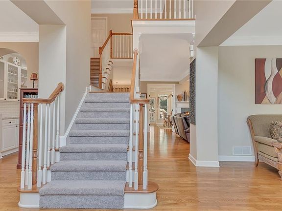 - Kitchen Features: Eat-in Kitchen, Pantry, View to Family Room, Stone Counters, Kitchen Island, Solid Surface Counters, Cabinets Other, Cabinets White