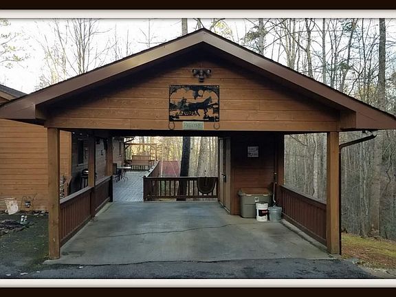 Immaculate updated cabin on lovely wooded lot within minutes of the Great Smoky Mountains National Park--wildlife is abundant at this cabin! Open and spacious floorplan with gathering room anchored by stone fireplace and cathedral ceilings. Kitchen updates include stainless steel appliances. Two full bedrooms/baths on either side of gathering area. Laundry room located off kitchen. Bathrooms updated with tilled walk in shower in one. Covered front porch to enjoy the great outdoors at any time and and spacious back deck to cook out/eat outside. Covered attached carport is oversized with storage ability in addition to parking. Also, a large storage building on property is custom-built for extra storage needs. This property is move-in ready--no need for repainting, replacements--current owners have already lovingly done the work for you.