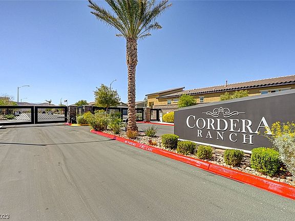BEAUTIFUL SINGLE STORY, SINGLE FAMILY HOME IN ACTIVE 55+ CORDERA RANCH GATED COMMUNITY. THIS HOME IS MOVE IN READY, & HAS GRANITE COUNTERTOPS, BUILT-IN DOUBLE OVEN WITH CONVECTION, STAINLESS STEAL WALL MOUNTED RANGE HOOD, UPGRADED FIXTURES, STAINLESS STEEL APPLIANCES WHICH ARE INCLUDED, WALK IN PANTRY AND MUCH MORE! FENCED BACKYARD. GOOD SIZE BEDROOMS, PRIMARY BEDROOM HAS A WALK IN CLOSET. OFFICE HAS A CLOSET & CAN ACT AS A 3RD BEDROOM. LARGE LOW MAINTENANCE DESERT LANDSCAPED YARD, WITH COVERED BACK PORCH & PATIO. SOFT WATER SYSTEM, & GARAGE AIR CONDITIONER/ HEATER TRANSFER. COMMUNITY FEATURES BBQ AREA, POOL & SPA, CLUBHOUSE, PET PARK, FITNESS CENTER & PARKS. LOCATED NEAR TO THE M RESORT & CASINO, SHOPPING & RESTAURANTS ON ST. ROSE PKWY, THE SILVER KNIGHTS ARENA, RAIDERS PRACTICE FACILITY & HENDERSON EXECUTIVE AIRPORT. THIS HOME WON'T BE ON THE MARKET LONG!