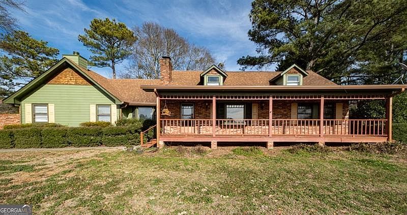 This charming ranch-style residence is situated on nearly 10 acres, offering a tranquil setting just outside Atlanta, providing a perfect balance of peace and proximity to the city's amenities. The home boasts 4 bedrooms, 3 full baths, and elegant hardwood floors throughout. Upon entering through the front door, abundant sunlight welcomes you from the expansive bay window adjoining the inviting rocking chair front porch. The cozy living room features a fireplace and custom-built bookcases, ideal for displaying family pictures and heirlooms. Just off the living room is a spacious primary bedroom with an ensuite bathroom, complete with a whirlpool tub, a separate laundry room, 2 generously sized closets, a fireplace, and a private courtyard—an ideal spot for savoring morning coffee. The main level also includes two additional bedrooms and a full bathroom. The kitchen is equipped with wood cabinets and complemented by an adjacent breakfast room leading to a sunroom with large glass windows/sliders overlooking the inviting in-ground pool and surrounding deck. Upstairs, a generous living space with a full kitchen and bathroom awaits, along with a sizable bedroom featuring its own private deck and external access. This upper level is perfect for accommodating out-of-town guests, a teenager suite, or potential income as a rental. The property is equestrian-friendly, fully fenced with upper and lower arenas wired for electricity and lighting, two pastures at the front and back, and a horse barn featuring 12 stalls, two tack/storage rooms and a bathroom. There is a second hay/shavings barn with 3 stalls and an attached run-in, and a third kennel barn with4 additional stalls. All barns feature standard sized stalls, are wired for electricity, and the main barn and upper arena are plumbed for water. Whether you're exploring income opportunities in the horse boarding/riding/training business or seeking a property to own and ride your horses, this residence is an ideal choice. Conveniently located within 10 minutes of grocery stores, shopping, restaurants, and 20 minutes to Georgia International Horse Park, it offers a perfect blend of rural charm and urban convenience. This is an As-Is Sale with Buyer's right to inspect.