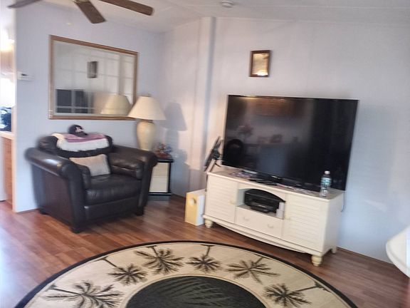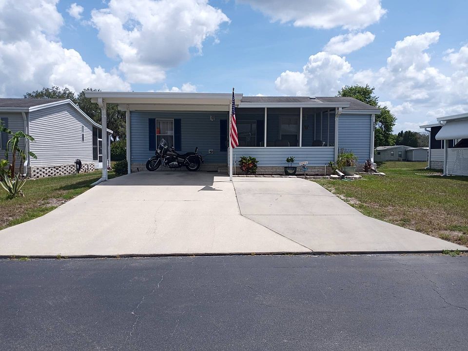 Located in a beautiful 55+ community close to shopping and restaurants. Community is very active with amenities to keep you entertained as well as being a well-kept, gated community. There is a pool with a complete clubhouse that includes a library, gym, pool table and complete kitchen with large entertainment area for parties, bingo and other gatherings. You will be living in a lovely and active community convenient to everything. The home is a plus! This wonderfully comfortable home is perfect and move in ready. Furnished and includes all appliances. The carport is large enough to accommodate two vehicles and leads to a lovely screened patio to enjoy the Florida weather. Entering the home is an open floor plan with split bedrooms. The living room is light and airy with direct entry to the kitchen. The kitchen has a wonderful farmhouse style stainless steel sink with new faucet, overlooking the back patio. The stainless steel, french door refrigerator is fairly new and all cabinets are in beautiful condition. The washer/dryer area is right off of the kitchen and leads to the back open patio. This patio overlooks a large retention pond that makes for a lovely view and quite a peaceful area to sit in the evening. The guest room has it's own bathroom and walk in closet with plenty of space for comfort. The master bedroom is very large and comfortable with an ensuite which has a walk in shower and beautiful vanity. This bedroom also has a wonderful walk in closet. The master bedroom furniture will not stay with the home and the leather furniture in living room will be replaced with another sofa and chair. The laminate flooring throughout the living room and kitchen are beautiful and adds to the comfortable feeling in the home. You will not be disappointed in this home; it is well kept and well worth the money. Call now for an appointment because this great home will not last long. It is priced to sell, quickly! Call Lorraine now. Lot rent is only $547.