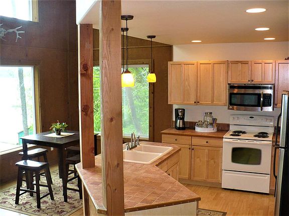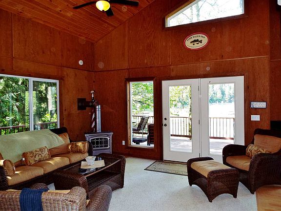 Newer Deer Lake Cedar Home on 65' of low bank waterfront. Incredible views from this unique location. Cathedral ceilings. Abundant upgrades throughout: Tile counter tops, wood floors... Airy open floor plan includes propane living room stove. 4 bedrooms, 3 bathrooms, family room and large decks. Treed lot with access off of county maintained road.
