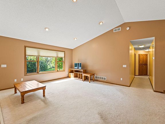 Beautiful 4 bed, 3 bath rambler set back and nestled on over 18 acres. Home features vaulted open concept main level, large kitchen, 4 season porch, 2 bedrooms including primary w/full private ensuite, full bath, spacious laundry w/access to deck and garage. Lower level is finished w/in-floor heat, 2bedrooms, 3/4 bath, family amusement room w/new flooring and walks out to the large patio and fenced in backyard. Property also has a 42'x72' pole shed that has 3/4 bath and 12'x72' space that is heated/insulated. Your oasis full of wildlife awaits. Brand new carpet throughout main level and stairs in November 2023, new custom window Blinds throughout main level November 2023, new LVP Flooring in lower level July 2023.