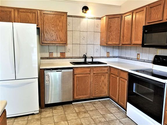 WELCOME HOME to easy living in this beautiful move in ready 2 bedroom, 2 bathroom villa, with 1,041 sq ft and a 2 car garage. Freshly painted in light and airy warm white throughout. The kitchen space is maximized with extra cabinets - you'll love the special shelving. And, the look comes together with the nice tile back splash. Vaulted ceiling in living/dining room combination. Laundry in hallway. Master suite privacy at rear with walk in closet and bathroom with brand NEW vanity and bathtub. Built in ironing board in 2nd bedroom. Tile and laminate throughout. Sunroom, fence, and garage also freshly painted. Extras on this property include an emergency gas generator, sunroom, side garage door and wood privacy fence. NEW insulated garage door. All kitchen and laundry appliances included. Keyless entry and alarm system. HOA dues are $55 monthly to include mowing/edging, 4 applications of fertilizer each year, and snow removal on street, driveway and sidewalks. HOME WARRANTY provided. IMMEDIATE POSSESSION.