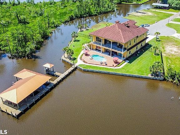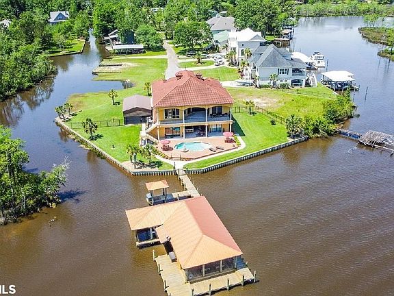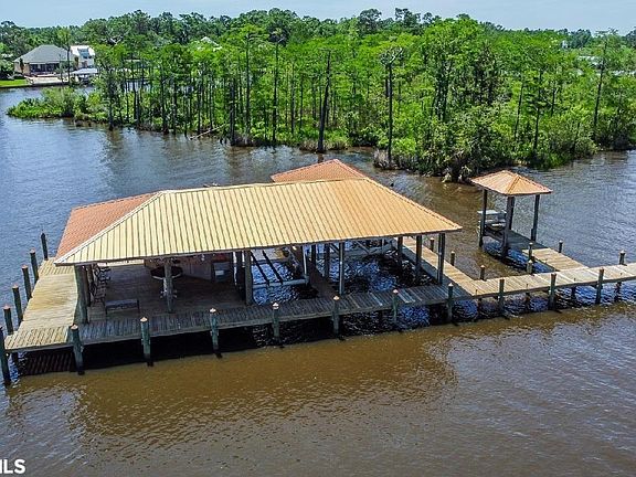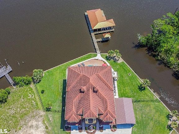 Phenomenal custom waterfront home with grand entrance and dual staircase on Rabbit Creek with direct access to Dog River! This stunning 3BR/3.5BA residence features handsome moldings, iron & stone details, spacious rooms, granite and travertine flooring, two gas fireplaces, chandeliers at entry and dining area, high ceilings and lots of natural light. From the moment you walk in, you are greeted with an open floorplan and breathtaking views of the river. The kitchen offers beautiful wood crafted cabinets, stainless steel appliances, granite tops & plenty of storage. Entertaining will be a breeze with your choice of bar top seating, a breakfast nook, and an open dining room. This property has an impressive master en-suite which has a walk-in stone shower with 2 rain shower heads, separate water closet, double vanity area, soaking tub, his and hers closets, plus stunning views of the water. Additional features are surround sound inside & out, granite windowsills, study, large attic, solid pine 8' doors, trim flex stone pillars, and fenced yard. The stately covered boat dock checks all the boxes for the outdoor lover and provides great access to the river and Mobile Bay with water depth ample for large boats. The dock is custom made for fun with two boat lifts, fishing pier, 2 rinse off showers, sun deck, outdoor grill and tiki bar with granite tops! After a long day on the water enjoy relaxing in the sparkling in-ground salt water pool decorated with a marble dolphin water feature, while enjoying the unique species of waterfowl. Outdoor entertaining area with gas stove, fireplace and bar. This well-appointed home also includes an exquisite downstairs with a full functioning workshop, workout room and a separate one-bedroom apartment with bath and kitchen. Abundant storage and parking. This serene and secluded river estate is away from it all yet only minutes to Downtown Mobile.