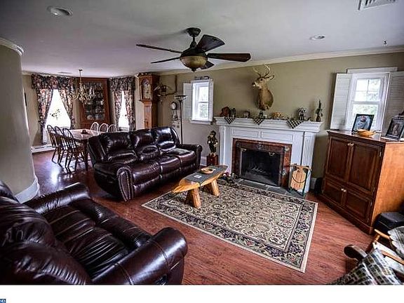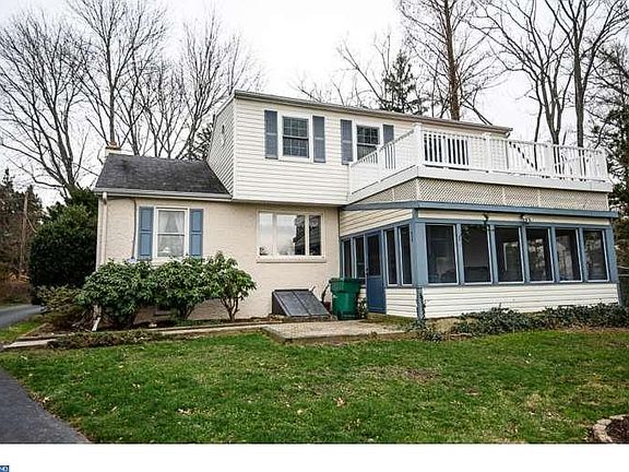 Welcome to this beautiful 3 bedroom, 3 bath Cape style home in Plumstead Twp. This home features an open living room/dining room that has a warm great room feel that includes a cozy wood burning fireplace, the first floor also consists of an eat-in kitchen with tile floor, soapstone countertop, and tile backsplash, a sun room(presently used as a home office), an additional home office room, 2 generously sized bedrooms, and a full hall bath with tile floor, custom cherry vanity and custom concrete countertop. On the 2nd floor you will find the master suite complete with dressing area, a full bath with tile floor and a large double sink vanity, and it's capped off with your own private 12' x 20' balcony where you can enjoy the valley views. The basement is finished into a 15' x 30' living space complete with full bath, recessed lighting and there is also an additional finished space for office or exercise room and the basement is complete with an outside basement entrance. Outside you will find a 13' x 19' screened in patio just off the kitchen, a beautiful back yard, a 2 car detached garage with storage above and an additional garage bay on the side along with a large workshop. This is a must see.