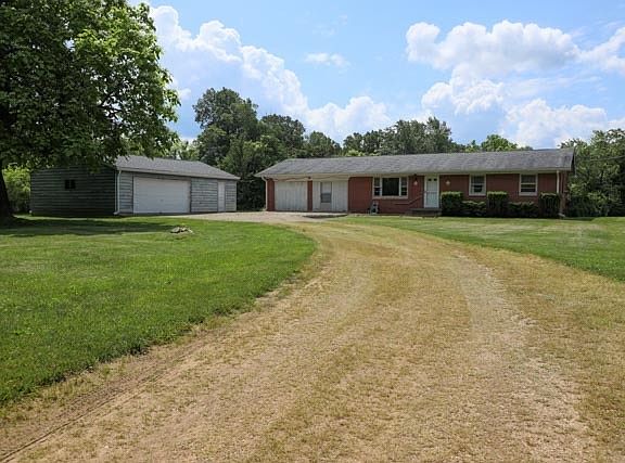 Welcome to Your Brown County Dream! This charming 3-bedroom, 2-bath ranch home is nestled on a sprawling 10-acre farm, offering unparalleled privacy and tranquility. Surrounded by nature's beauty, you'll find three fenced pastures ideal for your horses or cattle, a huge 30x40 barn, and a pond perfect for either your livestock or fishing. The home features a spacious living room, super cute kitchen & a large 24x26 bonus room. The home does need updating, which makes it a perfect canvas for you to add your special touches. It is move-in ready with fresh paint & some new flooring throughout. The 24x36 detached 3-car garage w/workshop is perfect for the hobbyist, the car enthusiast or those needing extra storage. Imagine your evenings spent on your porch, soaking in the peaceful surroundings where you can't see your neighbors. This is a place where you can truly escape the hustle and bustle, yet remain close to the essentials with being only 15 min to Nashville. Seize the opportunity to own your own slice of paradise. It is being sold As Is & Cash Only. There are Endless Possibilities with this home & property. Bring Your Dream & Come see for yourself! See the Virtural Tour!