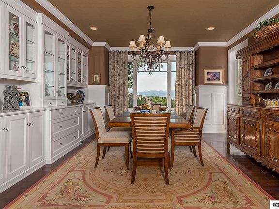 IMPROVED PRICE! MOTIVATED SELLER! No detail has been overlooked in this well appointed custom home from the grand entry to the move room and grounds. Gourmet kitchen features commercial grade appliances, granite slab countertops w/tumbled stone backsplash. Entertaining is easy and crowds can flow throughout the expansive great room with custom milled cabinetry as well as formal dining room, bar and kitchen. A delightful living room wrapped in glass is just off the kitchen with a fireplace and city views!