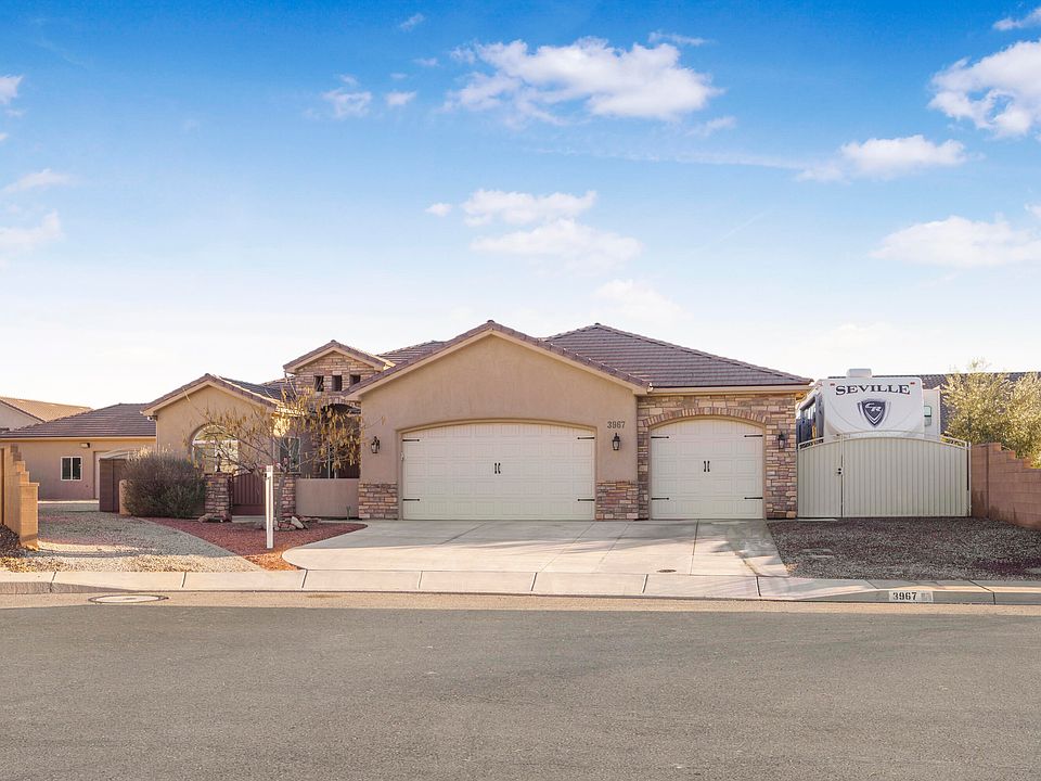 Stunning home on a spacious 1/3 acre lot, boasting 2500+ sq. ft., 4 beds, 3 baths, and a convenient 3-car garage with RV parking. The open and inviting floor plan creates an ideal space to entertain guests including the kitchen with a large center island opening up to the family room flanked with a fireplace. The master bedroom has a spacious en-suite with a deep jetted tub and walk-ins shower. Enjoy the wonderful weather under the backyard patio with an outdoor kitchen installed. The separate ADU (Additional Dwelling Unit), currently a versatile shop, spans 1268 sq. ft. with a full bathroom and garage, offering potential as a Casita. Enjoy mature fruit trees, irrigation system, and a greenhouse for added charm and convenience. Your dream home awaits!