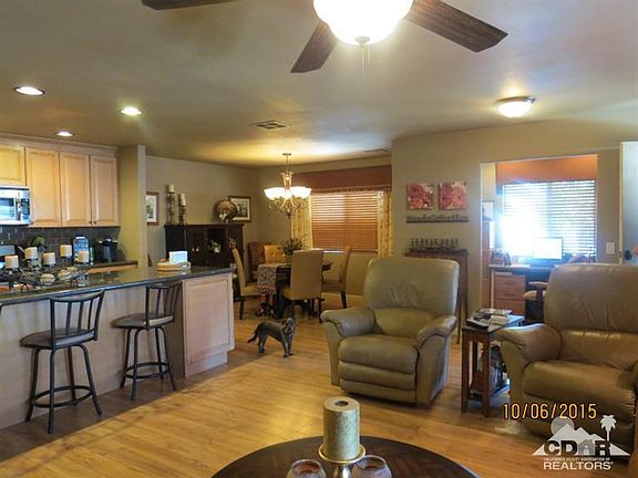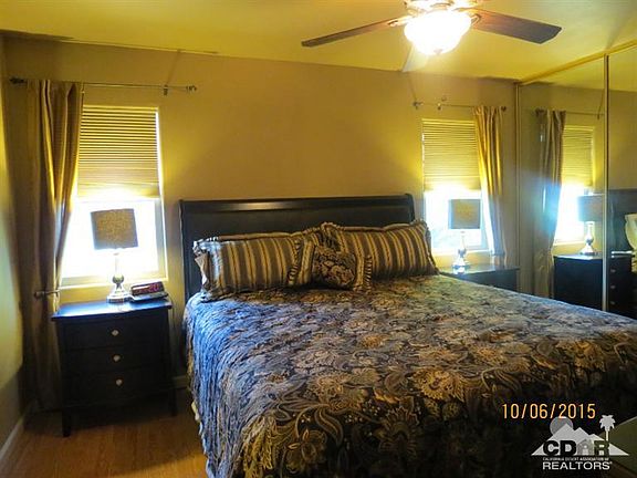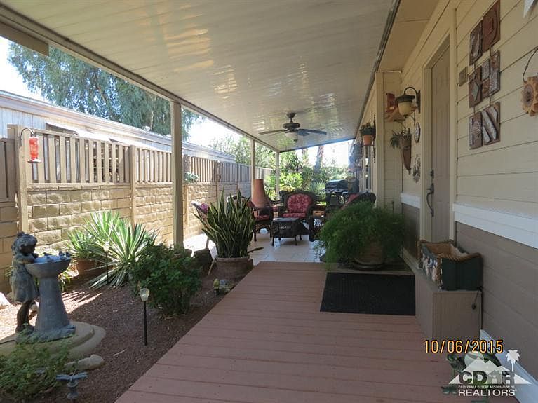Beautiful remodeled home. Nothing to do except move in!! The beautiful tiled patio area & grounds greet you upon arrival. This two bedroom, two bath home offers a craft room & an extra office area. Improvements are: roof, siding, drywall, windows, cabinets in kitchen & baths, laminate flooring throughout except both baths are tiled. The 11' Kitchen Island boost beautiful granite counters as do the baths. The stainless steel appliances are included. There is a garage facade door with electric opener. The sheds is extra large to house the golf cart which is included. The laundry area is extra large. The hallway is extra wide. This home is a great entertaining house! Home is on tags for the cash Buyer. Furniture, patio furniture & certain shelving in craft & laundry room will not stay. Palm Desert Greens is an active senior community with many amenities. FREE golf is included in the HOA dues of just $260p/m. Put this home on your list to view. You will not be disappointed