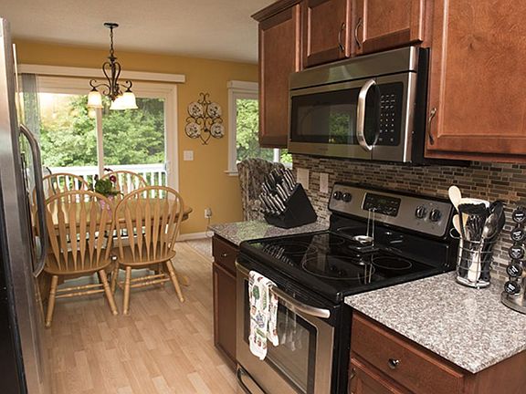 Spacious two bedroom two bath townhome with a wooded backyard view. Huge lower level bedroom. Home has been completely updated within the past two years. Including kitchen appliances, flooring, water softener and A/C unit. New siding plus new roof on the garage as well. Private patio/courtyard space for your enjoyment. Quick close possible! Come see today before it's gone!, Directions 70th to Dawn - South on Dawn to 76th Way E. Right (W) on 76th Way -to home.