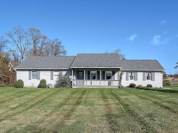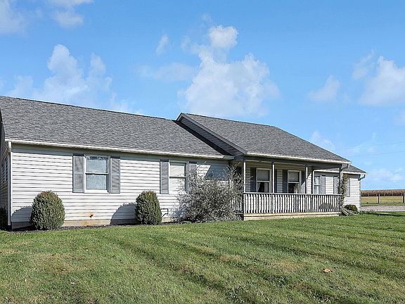 Peaceful setting on over 5 acres in Liberty Union School District. You will love the hardwood floors and vaulted ceilings in the dining room. Convenient 1st floor laundry. Three bedrooms and two full bathrooms on the main level, with a full walk-up basement ready for your personal touches. This property has natural gas (connected in 2022). Don't miss the 16x21 barn with water, great for 4H projects. Some updates include: Roof and gutters replaced in 2020. Back porch converted to sunroom in 2010, Furnace (2009), Whole house generator (2012), AC (2017)