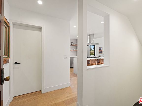 This 3-bedroom, 2.5 bath townhome in Mar Vista has been completely remodeled from top to bottom. Located in a boutique complex of only 7 units, it sits just a few blocks from the renowned Mar Vista Farmers Market and the Windward School. Convenient to Venice Beach and close to downtown Mar Vista shops and everyday necessities, the home blends comfort and style. Interior upgrades include smooth coat walls and ceilings and natural oak wide plank hardwood floors with handmade stair treads. The custom kitchen features oak cabinetry with floating shelves, a waterfall island, brass hardware, quartz counters, tile backsplash, and a full Bosch appliance suite including French door refrigerator, 5-burner range, wall oven, microwave/convection, and dishwasher. The dramatic living room boasts soaring two-story ceilings, modern track lighting, and a reimagined fireplace with crackle tile hearth. Upstairs, the loft bedroom includes a built-in wardrobe and shelving, while the guest bedroom showcases custom lime washed walls. All bedrooms include woven shades. Luxurious baths highlight designer finishes in limestone, marble, quartz, and tile with high-end fixtures. Additional features include a laundry/half bath with a stacked full sized washer/dryer and upgraded closet doors. A rare blend of craftsmanship, design, and location in the heart of Mar Vista.