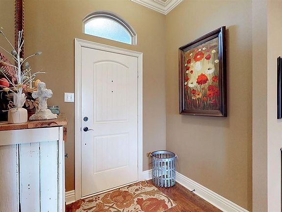 Minutes from I30/I430. Walk/biking trails. Pool/pavilion . Bryant school. Qualifies for 100% RD. Cellulose insulation/radiant barrier in roof. Granite Slab in kitchen/baths. Open living w/high ceilings. Master suite w/trey ceiling, jetted tub, double vanity, separate shower, 2 walk-in closets. Backyard fenced, upper/lower decks, backs up to green space. Kitchen has stainless appliances, lots of natural light, large pantry. Storm shelter. See agent remarks!