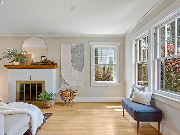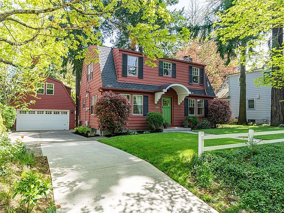 You'll love this storybook Dutch-style home with over-sized yard and quick access to neighborhood eateries and shopping. Surrounded by trees, and set back from the street, its walkaway leads to a classic front door archway and into a formal entry. Hardwood floors, wood burning fireplace, deep coat closet and light-filled staircase are the first architectural details to say 'hello'. Step into the kitchen with maple shaker cabinets, a discreet half bath, oak floors and light-filled sitting nook for morning tea. Downstairs access brings forth an area to hang your coat and store your shoes before you hit the den. Generous laundry room with room to fold clothes, extra storage and great ceiling height. Circle back upstairs for two bedrooms on the second floor plus full bath. Dreamy balcony, original hardware and dbl closets sing old-house charm. Think about the backyard dinners on the deck next to the maple trees that are filled with bird song you might have. Deciduous trees fill in to create a wall of greenery and privacy in the summertime. Make use of the convenient side door to the architecturally coordinated garage that was fully permitted and built in 2003. A garage that has radiant heat floors and room for 3+ cars. This space is already plumbed with a water line + sewer line (think of the possibilities that this main level space might provide). Head upstairs to the office with its multiple windows and wood floor. Perks: The main house roof was replaced in 2002 (40 year warranty), the HVAC system is AC-ready and the garage is fully insulated. Once you're back outside, enjoy walking this quaint neighborhood with its nearby parks (Wilshire is 2 blocks away) & its many flowering gardens. Quick access to happening spots and highly rated schools make this one a gem.