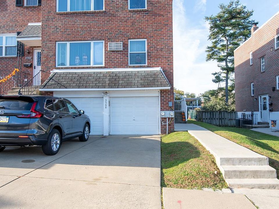 Welcome home!!! A solid brick twin duplex for sale near Holy Family University. Both floors have 2 bedrooms and 1 bathroom. The ground level has a spacious 2 car garage with plenty of room for storage. The property has been family owned and occupied since 2000. It has been very well kept. The first and second floor have newer carpet wall to wall, and there is plenty of outside space to be enjoyed. The first floor tenant has a lease which expires in 9/30/2024, and the second floor will be delivered vacant the day of settlement.
