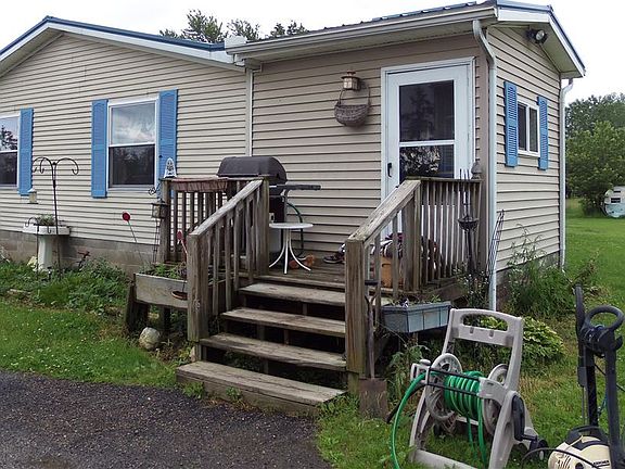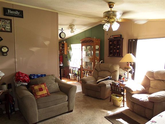 If you want seclusion, This is the place for you! This cozy 3 bedroom 1 bath doublewide on a permanent foundation and deeded as real estate is tucked into 5 acres and located on the outskirts of town. Included with the home is a 40'X 24' Garage that has