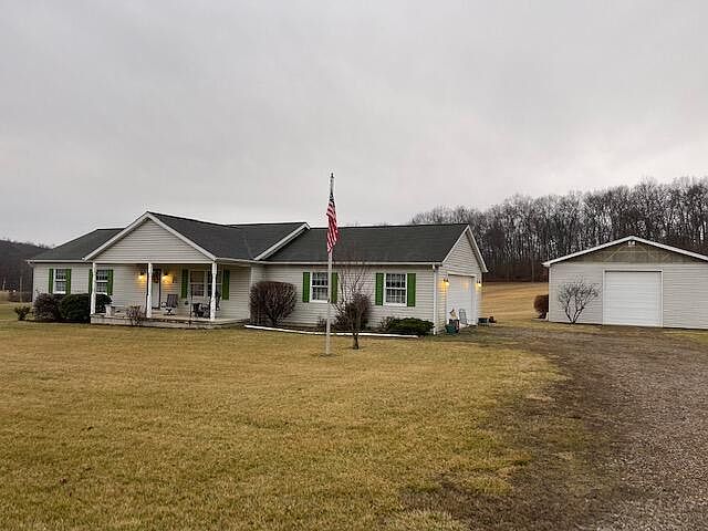 Beautiful home with 3 bedrooms, 2 bath home with attached 2 car garage, 30x32 Pole Barn and situated on 1.86 acres has so much to offer. Patio and covered rear deck along with a covered front porch. Enjoy a cup of coffee and the breathtaking view on the rear covered deck. This is a Unibuilt homewith Geothermal heat and air. Call today to see this beautiful home. Home warranty included.