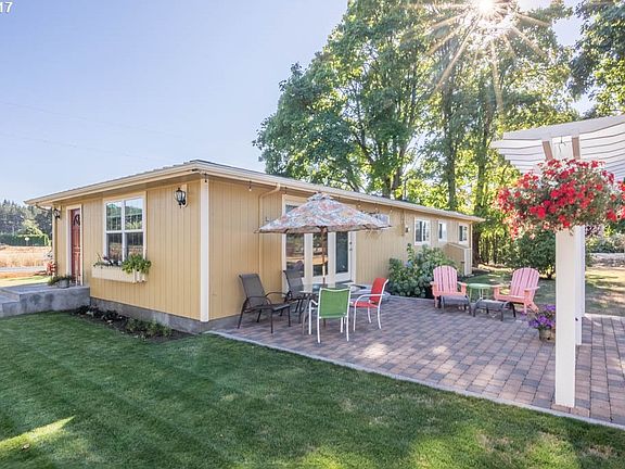 Neat & cute & full of charm -many updates w/vinyl windows, siding, easy-care vinyl wide-plank grey 'wood-look' floors, new carpet in LR & new metal roof! Kitchen has tiled island & oak cabs. 3rd bedrm has an armoire for closet which will stay. Lrg updated bathrm w/granite counter & tiled floors. Love the 30X60 Shop w/carriage-house doors on garage end & 2 10' tall door-openings on shop side for lrgr vehicles/RV's. Paver patio w/pergola.