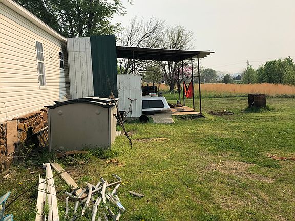 Great first home for a family. Has a huge back yard with a big shed and concrete slab behind, has a covered patio. A/C outside is a year old remodeled guest bathrooms, all rooms are decent size and in good shape huge pantry has dining room. Awesome huge living room with wood burning fireplace. Front door is brand new. This property is sold AS IS.