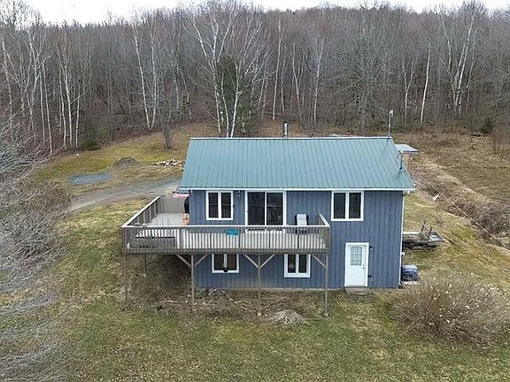 This cozy 3-bedroom home overlooks the North Lake and features a spacious wrap-around deck for enjoying the beautiful scenery. It has been updated with modern amenities like a heat pump and a new metal roof. Inside, you'll find an open kitchen, dining, and living area that gives off a charming cottage vibe. Natural light floods in through sliding patio doors, connecting you to the outdoors. The main floor includes a comfortable bedroom and a full bathroom. Downstairs, there are two more bedrooms and a utility room with laundry facilities and space for a workshop. Outside, the property spans almost 3 acres and includes three storage sheds. Located in a peaceful rural area close to the US border, this home offers a perfect mix of tranquility and convenience. Don't miss the chance to see it for yourself! Refrigerator, stove, washer, dryer, generator and dishwasher included