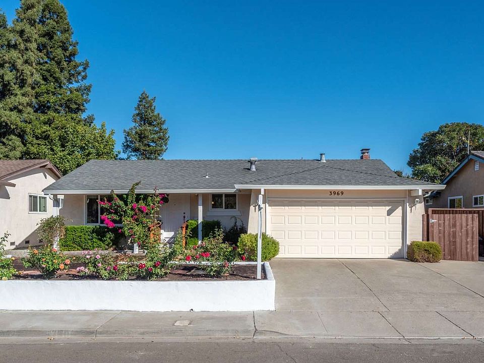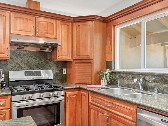 Love at First Sight! You will fall in love with this gourmet granite slab kitchen with custom cherry cabinetry and Mahogany floors. Beautiful arched doorway to living room. Step down family room with arched doorway and cozy fireplace. New plush carpeting, dual pane windows, new interior paint. Remodeled hall bathroom with glass tile backsplash and tile floors. Master bedroom with updated bathroom. Peaceful backyard with covered deck, garden and fruit trees. Walk to all three award winning schools, parks, shopping and historic downtown Pleasanton. Minutes to all highways, Bart and Livermore wine country.