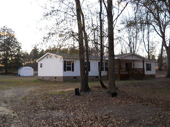 REDUCED $10,000 BETTER THAN NEW!!! TOTALLY RENOVATED 1920 sq.ft. manufactured home, 3 bedrooms, 2 baths sitting in the middle of 3.4 acres. This home is completely new inside with new paint, carpet, vinyl, refrigerator, smooth top range, ceiling fans, all new bathroom fixtures, double vanity in master bath with his/her walkin closets, large family room with wood burning fireplace. Home is cooled and heated by new 14 seer heat pump, new front and back porches, back yard has a 12x10 storage shed. Wooded in front of home for privacy. Back yard is perfect for entertainment with huge open acreage that can be used for multiple purposes.