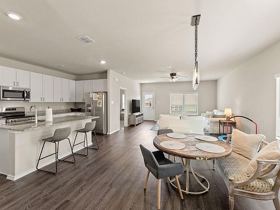 Modern Comfort Meets Convenience in This 2024-Built Home Step into this beautifully designed single-story home, built in 2024, where natural light and modern finishes create a bright, welcoming atmosphere. The open-concept layout seamlessly connects the kitchen, dining, and family room perfect for both everyday living and entertaining guests. At the front of the home, you'll find two secondary bedrooms, a full bathroom, and a convenient laundry room just off the foyer. The spacious primary suite is privately situated at the rear, featuring a luxurious ensuite bathroom and a generous walk-in closet. Enjoy the best of community living with a short walk to the neighborhood park and pool. Plus, you're just minutes from Legend Point Elementary, New Braunfels Middle School, and the area's top shopping, dining, and entertainment options.