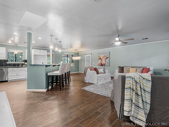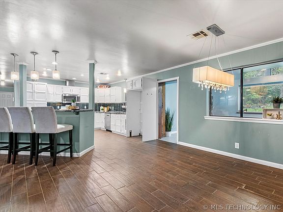 Setting amongst the trees, this ranch style is secluded on 10 acres just off HWY 75 between Caney and Copan. This home offers an open living/dining/kitchen and an additional family room/sunroom that is great for watching the outdoors. Kitchen and bathrooms have all been updated in the past 3-4 years. New roof in 2021. New HVAC in 2022. Additional buildings include a gravel floored shop, and a combination tree house/garden shed. The above ground pool offers a retreat when the chores are done.