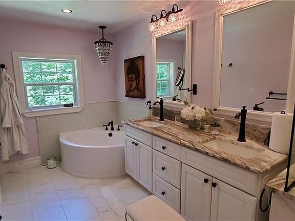 You will never want to leave! Looking for your own retreat? Wanna come home to a private paradise? This home checks all the boxes if you do. Beautiful ranch with walk out basement is nestled on 1.7 acres. Enjoy all the updates including, remodeled kitchen with granite countertops, kitchen island, Kohler and Moen fixtures and stainless appliances as well as a large walk in pantry and separate laundry room. Open floor plan with deck off of kitchen, living room w/fireplace and separate dining room for entertaining. The main bedroom is spacious and also has its own deck. The master bath is something out of a magazine w/soaking tub and walk in shower. Basement is a large open area, great gathering space that could be a rec room or huge bedroom. Additional bedroom w/egress window and additional bath with living area are also down and both have new flooring. You will have to look long and hard to find a peaceful setting like this.