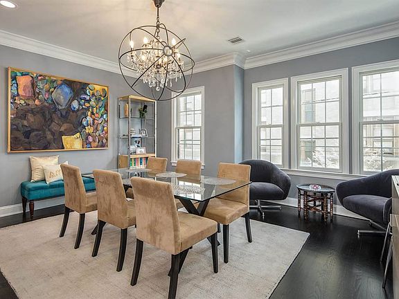 LANDLORD PAYS BROKER FEE PLUS 1 MONTH FREE ON A 2 YEAR LEASE! Brand new construction in 2016. This fabulous 2,129 square foot Village duplex townhome with private entrance has 3 bedrooms + office/den, 2.5 bathrooms, private terrace off the kitchen + private roof deck that was redesigned in 2019 by A Small Green Space to include pergola, plantings and automated watering system. Just upgraded with white oak flooring, custom chandeliers, brand new appliances including Wolf microwave and oven/range that vents out, all LED overhead lighting, full glass doors, new fixtures, August lock system and NEST thermostat. Ground floor bike/stroller storage, in home storage area + additional storage in the building. The massive kitchen with extra tall cabinets, and quartz countertops opens into an equally large living/dining area, perfect for entertaining. Beautifully situated on a quiet street with plenty of parking, and easy walking distance to shopping, dining, and the Grove Street PATH station.
