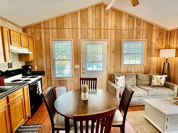 Monthly rates starting at $1300/ month, subject to availability and occupants. Call for details. Discover this Charming Cottage for rent in the scenic mountains near Lake James in Marion, NC! This fully furnished-cottage is situated in a gated resort with exclusive access to Lake James. Enjoy a range of amenities including a swimming pool (open from Memorial Day to Labor Day), boat storage, a dog park, and basketball/volleyball, playground, gem mining and more! It's just a short stroll to our private cove on Lake James. This cottage features a master bedroom with a queen-sized bed and 1 twin-sized bed located in the loft. The kitchen is fully equipped with a stove/oven, microwave, full-size refrigerator, and dishwasher, along with all necessary utensils, plates, and cups. Additionally, the cottage has a washer and dryer combo for your convenience. We require the first month's rent to be paid as a security deposit. A maximum of two pets are permitted with a $400 nonrefundable deposit required for the first pet and an additional $35 per month for each pet. Cleaning Fee: $150 deducted from security deposit when you leave. Each cabin and cottage can accommodate up to two vehicles. Any trailers or boats must be stored in the designated area, which incurs an additional fee. In addition to complimentary Wi-Fi, our cottage is equipped with 50-inch Roku TVs that offer Spectrum cable and access to free streaming channels. Any prospective monthly and seasonal residents are required to undergo a background check and obtain approval from Barefoot Landing Management. Each individual aged 18 and over who will be residing in the property must complete the application and background check process. Prices increase to in-season rates starting May 15. Short-term weekend or weekly rentals are also available. Additional cabins are available, including options with two bedrooms and lofts. Water, TV & Wi-Fi are included, electricity will be billed separately. We offer Month to Month, weekly and short term rentals.