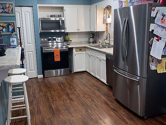New air conditioner and windows installed in 2017. New stainless appliances purchased and back deck built this past summer. Living room, foyer, kitchen, dining room, laundry room, two closets in master bedroom. There is an extra room that is not finished (just needs flooring) that can be another bedroom or den. The backyard is also fenced in. We have wonderful neighbors and live on a quiet street in town. Call or text me at 334-453-1310 or Brendan at 334-437-1330.