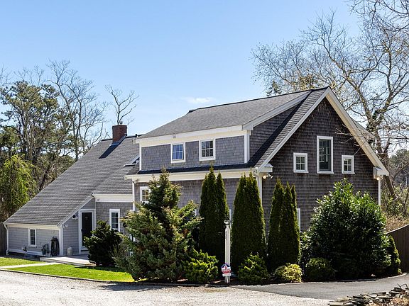 You will not find a more perfect blend of modern and historic than this stunning home nestled into one of Harwich's favorite conservation areas. The oldest portion of the home (built on Nantucket and moved to it's present location) was replaced in 2014 by the current owners. The new home offers a sun-dappled great room with gas fireplace and slider to the fenced back yard. Upstairs you will find a spacious primary suite with sitting area and luxurious en-suite bath with walk-in shower. As you pass through the kitchen (also fully renovated in 2004), you enter an addition c.1950 with lovely custom millwork and charming built-ins throughout. A second bedroom and dining room with picture window overlooking the conservation land complete the first floor. Upstairs you will find 2 additional bedrooms and a half bath. This home abuts 250 acres of pristine conservation land and is a nature-lover's dream. Right out your back door are trails, Cape Cod Rail Trail, fishing, active herring run, birdwatching, Herring River salt marsh, and more. All this less than 2 miles from the beaches of Nantucket Sound, and 1 mile from Dennis Port Village. Welcome home.