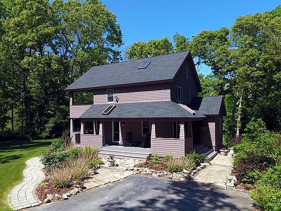GORGEOUS 3 BR, 3.5 BA Craftsman-style residence on lush 5.43 acres beckons! In private, serene setting & encircled by open porches w/traditional tapered columns, opulent gardens, you'll find peace & tranquility in woodsy views, stone walls. Smoked oyster stained shingles offer the perfect backdrop to blue, pink, lavender & lace hydrangeas, peonies, daylilies, iris, magnolia. Inside, the house boasts a new Kitchen yet 5 years young w/Brookhaven maple cabinets in cappuccino finish, granite counters, pantry closet! Open Kitchen/Dining w/slider to porch; Sitting Room; Den w/cath ceiling; Living Room wing graced w/windows, beamed cath ceiling, wood burning fireplace. Central A/C, porcelain & oak floors. Balcony covered porch off bedrooms. Sumptuous Master Bath! Finished lower level holds Office, Family Room to patio. Attic w/skylight, windows, is plumbed for heat. New roof 2014, new furnace 2015. Perennial Kirby Brook traverses the far eastern edge of the property. WOW!