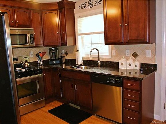 It's all in the details! Beautifully upgraded and meticulously kept Townhouse in the secretive enclave of Santa Fe Commons. Tucked back from the traffic of Eastern Street and shielded from view by trees sits this 10 Unit Condominium Complex. Completed in 2008, Santa Fe Commons is an oasis of quiet living. Unit A is the Builders Model end Unit, and its current Owners have upgraded the entire interior. High end hardwood floor on both the main and upper floors. Living Room has Bay front window, Crown Molding and connects to the DR/Kitchen area with a widened opening. The kitchen boasts Whirlpool stainless Appliances, Cherry Cabinetry, Black granite counters, and a wonderful patio deck off the back. The Eat-In Dining Area is Light and bright, and the rooms feel airy and spacious. The 3rd floor has 3 bedrooms and full bath. Master Bedroom has vaulted ceiling and walk-in closet. Laundry in hall has upgraded stackable W/D .On the ground floor, the Owners created a plushly carpeted Den/Man Cave which adds and extra 369 square feet of living space with surround sound system, faux fireplace and half bath. This could also be a used as a 4th bedroom. One car garage with automatic opener and storage.