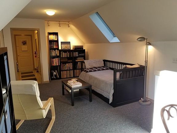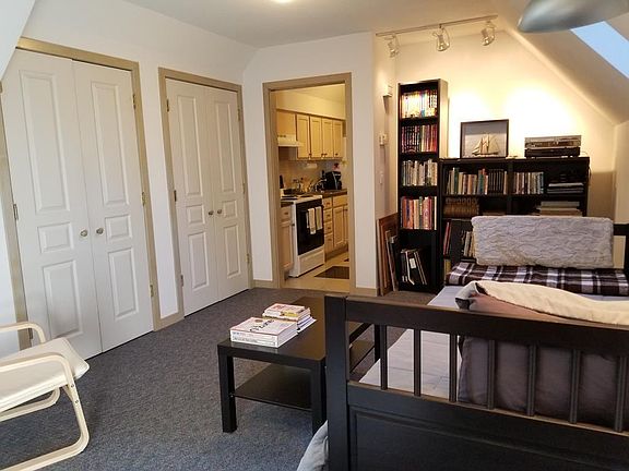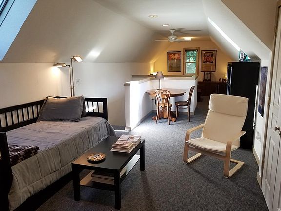 Charming Studio Apartment in Private Home. This cozy, unfurnished studio apartment, is privately situated above the attached garage of a single-family home. Enjoy the convenience of a separate, private entrance and an open floor plan that includes defined sleeping and living areas. The apartment features a full kitchen and a bathroom with a stall shower. Utilities are included in the monthly rent, along with fiber-optic internet, WiFi, YouTube TV (basic package), and one garage parking space. A washer and dryer, shared with the main house, are also available for your use. This is a legal rental unit, ensuring peace of mind for prospective tenants. Pet policy: one cat will be considered. Utilities, basic cable, WiFi, YouTubeTV included as well as washer/dryer access. Garage parking. No smoking in unit. Prefer no pets but will consider one cat. (Unfurnished: furniture in photos is from previous tenant.)