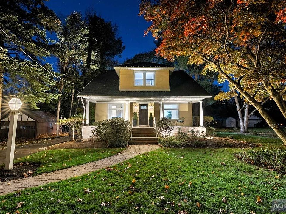 A "Storybook" property in the 'coveted' west side of Haworth awaits this wonderful find. A renovated S/SW facing home is abundant character. Stately columns on the large front porch complete with Wainscoting ceiling, underscores the uniqueness of this home. Double entry foyer and big windows allow lots of natural light into the elegant LR w/Fireplace. The home has a great flow from living room to DR with rich hardwood floors. Big EIK has outdoor access to the nice deck overlooking the big back yard. Very private yard, as it's surrounded by stunningly beautiful trees of many varieties, including Bamboo. House has 4 bedrooms and room to make 2nd full bath upstairs. Full finished basement is great for kids to play or a movie room and has access to the backyard. New shingled GAF roof. Long driveway leads to a (wide) 2 car garage. Close to public Tennis courts, golf course, transportation and nature!