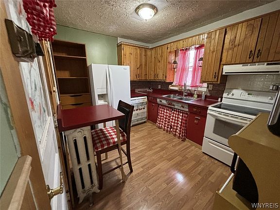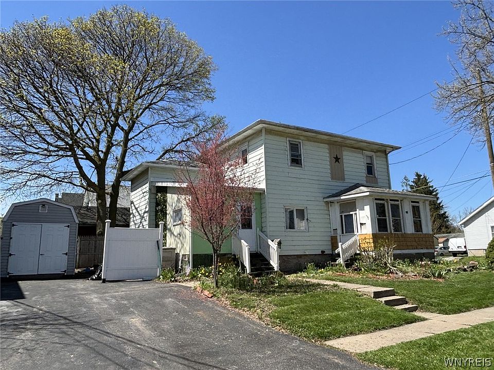Well priced and move in ready home on West end of Lockport.. walking distance to Outwater Park. The front entry features an enclosed front porch. The mostly used side entry brings you into a large laundry/mud room with plenty of closet space. The adorable country kitchen boasts knotty pine cabinets, newer laminate floors, built in shelves, custom pantry and built in table w/matching chair. All appliances are included. The dining room has newer laminate floors, ceiling fan and mostly open Oak banister staircase. Large opening to huge living room and an open family room which could easily be transformed to a 4th bedroom. Upstairs are 3 bedrooms and a full bath. Easy access to the walk in attic. Updates included some windows, Williamson Boiler approx. 2018,Elec HWT 2018, Blown-in insulation, Leaf guard on gutters, more. Blacktop driveway, Circuit breakers, full basement w/ glass block windows has inside entrance and Bilco doors. Sturdy shed w/ electric. This property is move in ready and is being sold "As Is". Showings begin at 9AM Friday, April 19th. Negotiations begin Sunday, April 28th. Offer are due by noon on April 28th.