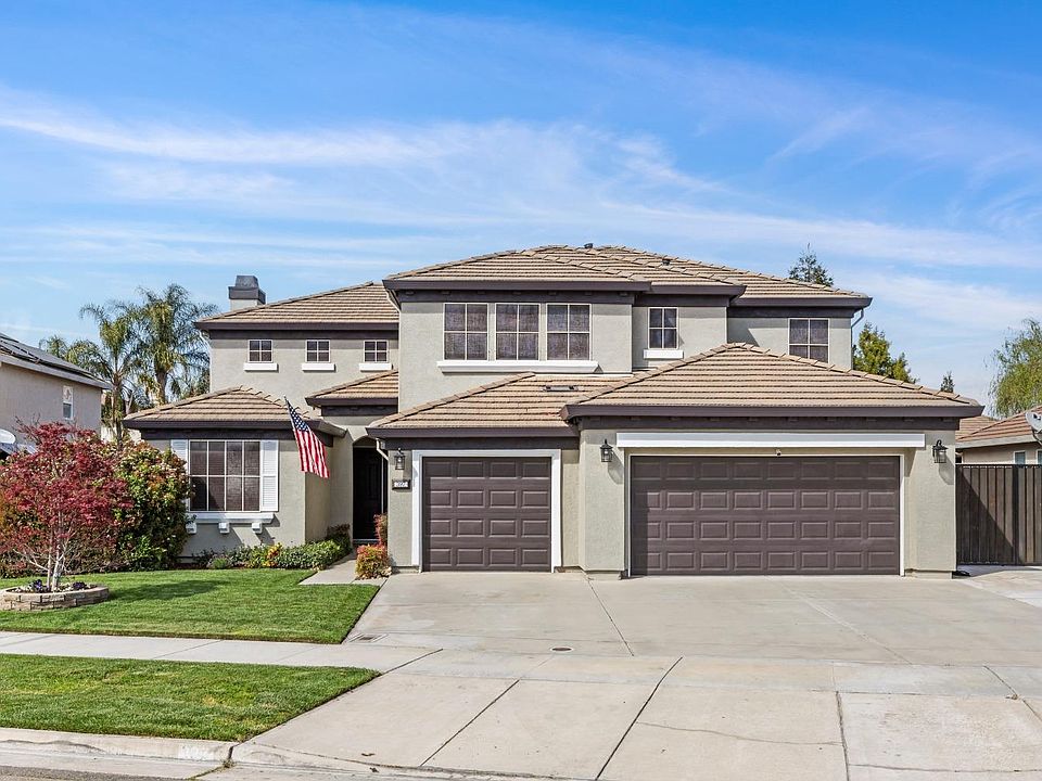 This stunning Ripon home has been beautifully remodeled and is in move in condition. Less than two years ago the kitchen was transformed with the addition of an enlarged quartz island & countertops, white tiled backsplash, all new appliances, plumbing fixtures & lighting. The entire interior & exterior of the home have been painted, new high end laminate flooring added, new lighting, and more! The spacious family room is open to the breakfast area & kitchen. There are new floating shelves & updated cabinetry along with a gas log fireplace. There is a dry bar next to the living room w/new quartz countertops. The floor plan & flow of this house are really fantastic. Downstairs features one bedroom & full bath and double door entry to the office. Upstairs features an expansive loft/game room/second family room along with the primary bedroom & bath and two other bedrooms. The upstairs hall bath features a newer shower & high end laminate flooring. The back yard is a retreat from the world! The black bottom pool & spa feature waterfalls & an Acapulco deck. There is a covered patio for outdoor living w/television set up, ceiling fan, & spacious lawn area. The side yard is set up for boat/RV storage w/new custom steel & wood gate. There is also new EV charging station in the 3car garage