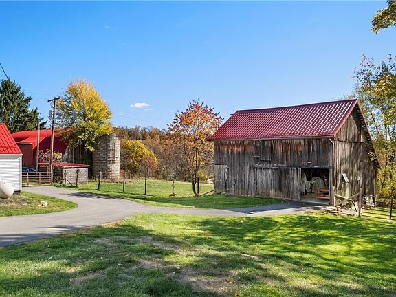 Who said you can’t have it all? Enjoy complete privacy and serenity on your own 22 acres while being 35 minutes from the city and 13 minutes from the Pittsburgh airport. Spend your days relaxing and enjoying nature or by taking advantage of the amazing entertaining spots this stunning farm has to offer. This extraordinary farmhouse has the character of an 1850s home while offering a gourmet kitchen with a huge island and seating for a large group. The living room is quaint yet cool with its natural wood floors, fireplace and bookcases. The first floor bedroom is like a dream with an ensuite bath w heated floors and a walk in closet. Outside you will see a gorgeous salt water pool and hot tub along with a beautiful deck for dining or entertaining…all overlooking YOUR property. Surrounding the home you will find everything you need to make this farm complete including multiple barns, a detached garage with a room on the second level, a greenhouse, flower beds, fruit trees and more.